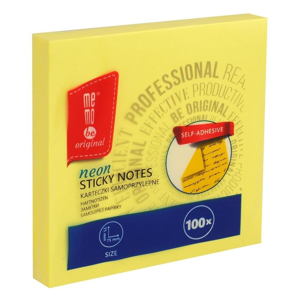 Bloczek samoprzylepny 75x75mm 100K neon MemoBe