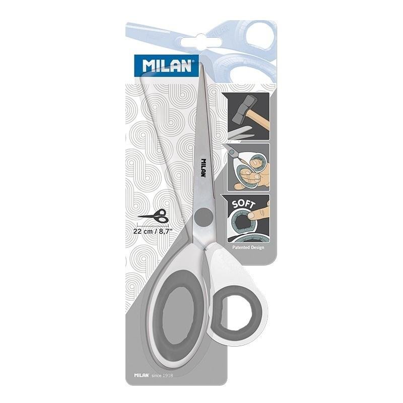 Nożyczki biurowe o długości 22 cm z ostrzem ze stali nierdzewnej. Plastikowe ergonomiczne uchwyty w środku wyściełane gumą. przeczytaj całość