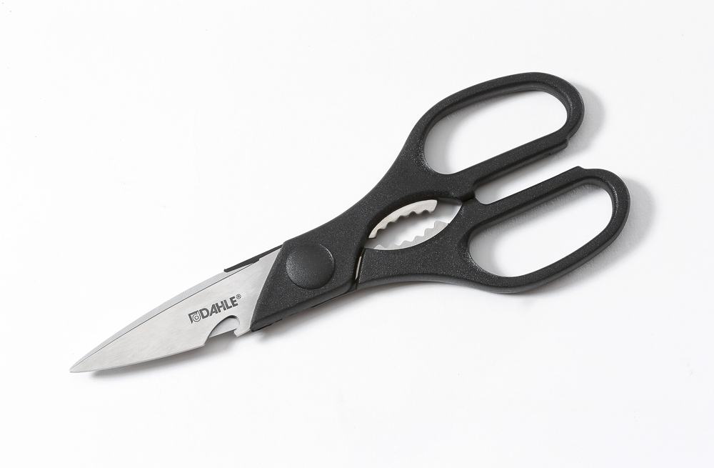 Wielofunkcyjne nożyczki ze specjalnym wyposażeniem - mikroząbkowanie dla niezawodnego utrzymania ciętego materiału, zintegrowany praktyczny otwieracz do butelek. Nierdzewna, hartowana specjalna stal do nożyc zapewniająca precyzyjne cięcia. Naostrzone ostrza gwarantują długotrwałe, ostre cięcie. przeczytaj całość