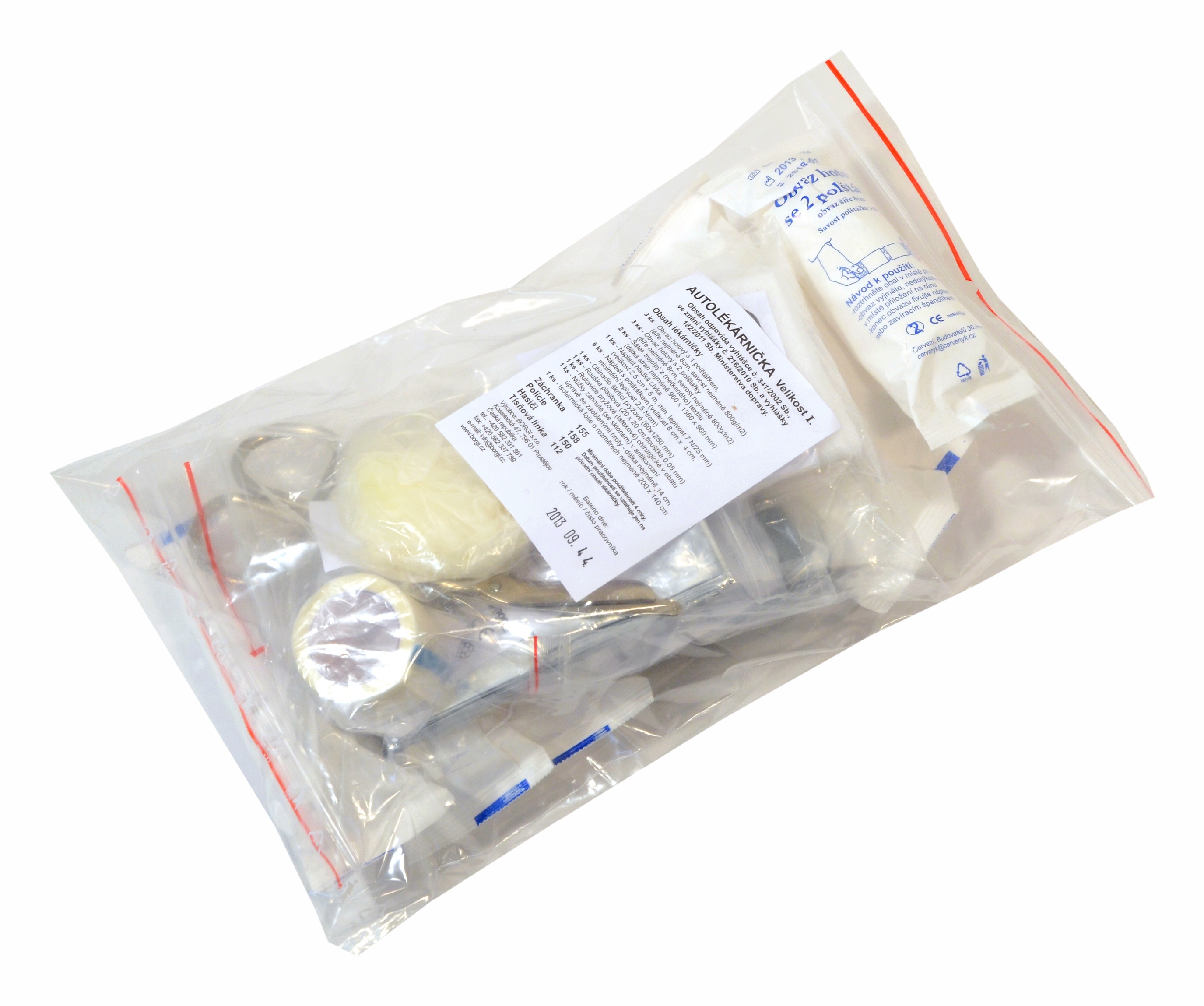 Náhradní náplň pro autolékarničku. Složení autolékárničky pro kategorii motorových vozidel M1, N, T, C a Ps. Splňuje požadavky MZ SR č. 134/2018 Z.z. Expirace autolékárničky: 4 roky. przeczytaj całość