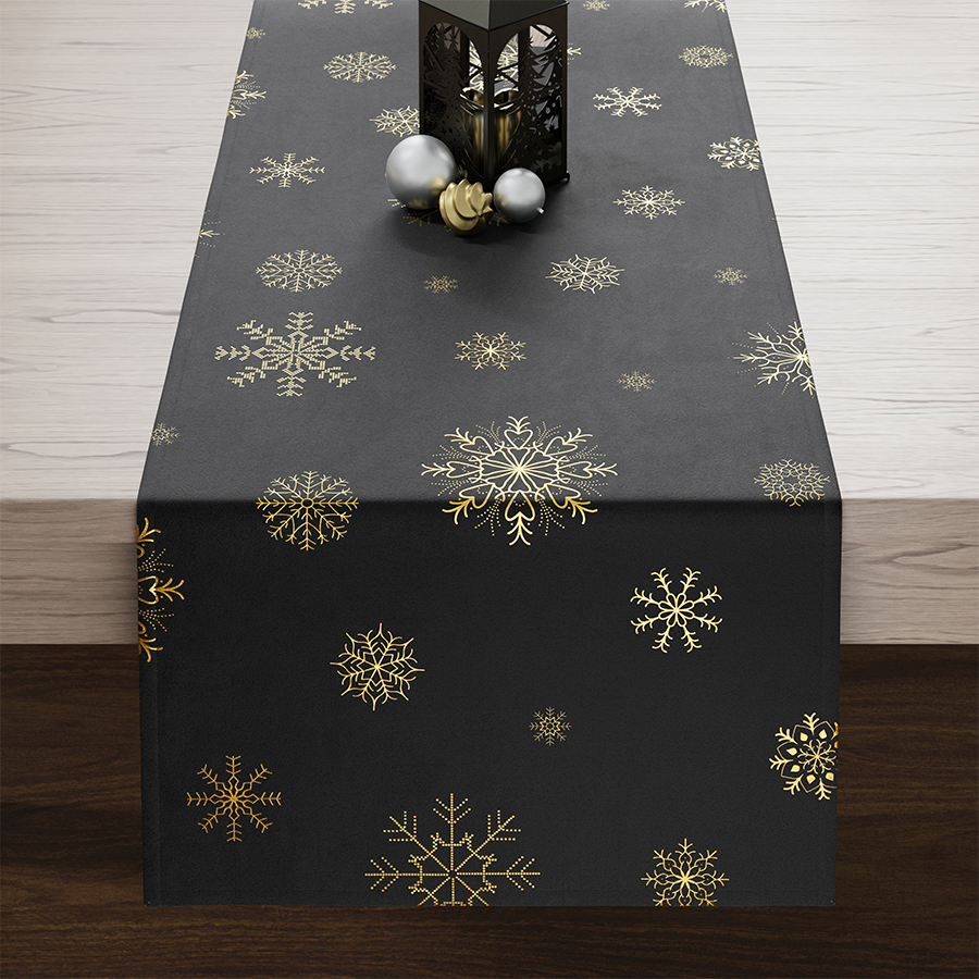 Ubrus - běhoun na stůl SNOWFLAKE černá/zlatá 40x140 cm Mybesthome