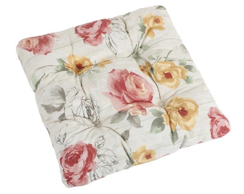 Sedák EMA prošívaný - růže na dřevě - 40x40 cm, prošívaný