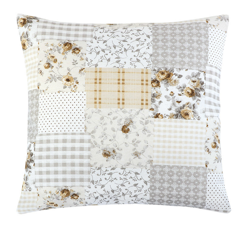Polštářek EMA - béžovošedý patchwork - 45x45 cm