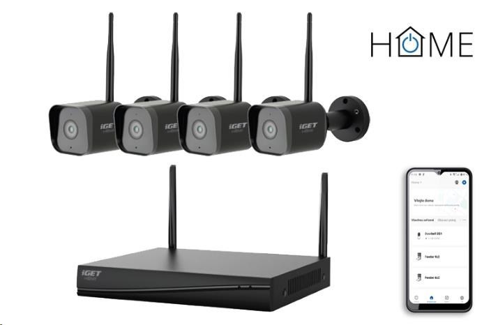 iGET HOME NVR N4C4 Bezdrátový kamerový Wi-Fi 2K+ (3MPx) systém iGET HOME NVR N4C4 (4-kanálový 3MPx rekordér NVR + 4 ks 3MPx barevných venkovních kamer s nočním viděním a detekcí pohybu a zvuku. Voděodolné kamery disponují odolností IP65, rozlišením 2K+ (2304 x 1296) a obousměrným přenosem zvuku....
