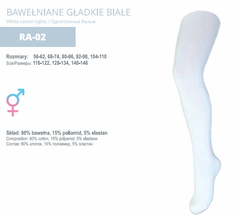 SCORPIO RA-02 Rajstopy bawełniane gładkie białe 52/56