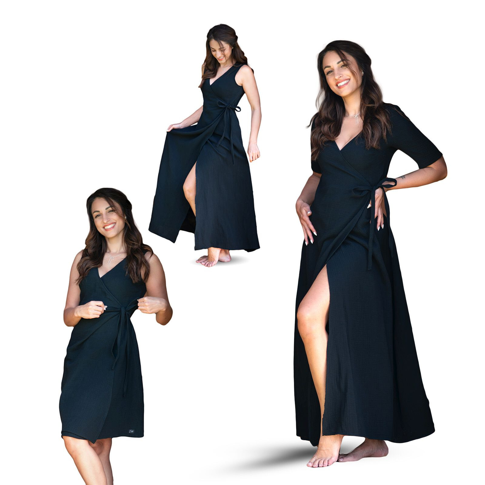Dámské mušelinové zavinovací šaty Ellena Black; Barva: černá; Velikost: 40 - dlouhé