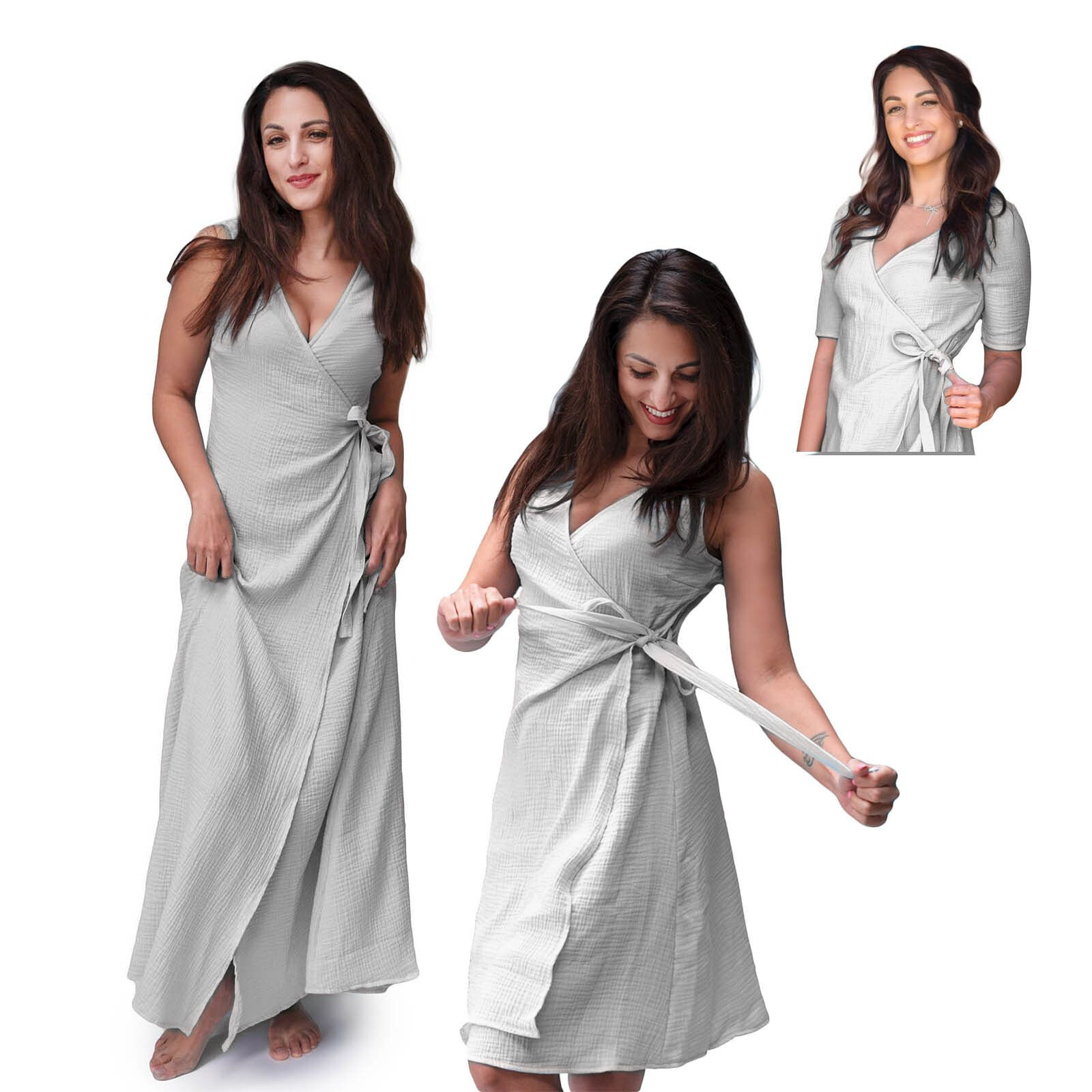 Dámské mušelínové zavinovací šaty Ellena Dove grey; Barva: šedá; Velikost: 38 - dlouhé