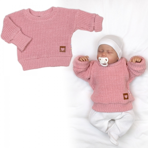 Rostoucí oversize pletený svetřík pro miminko, starorůžová, 80/86; 80/86 (12-18m)