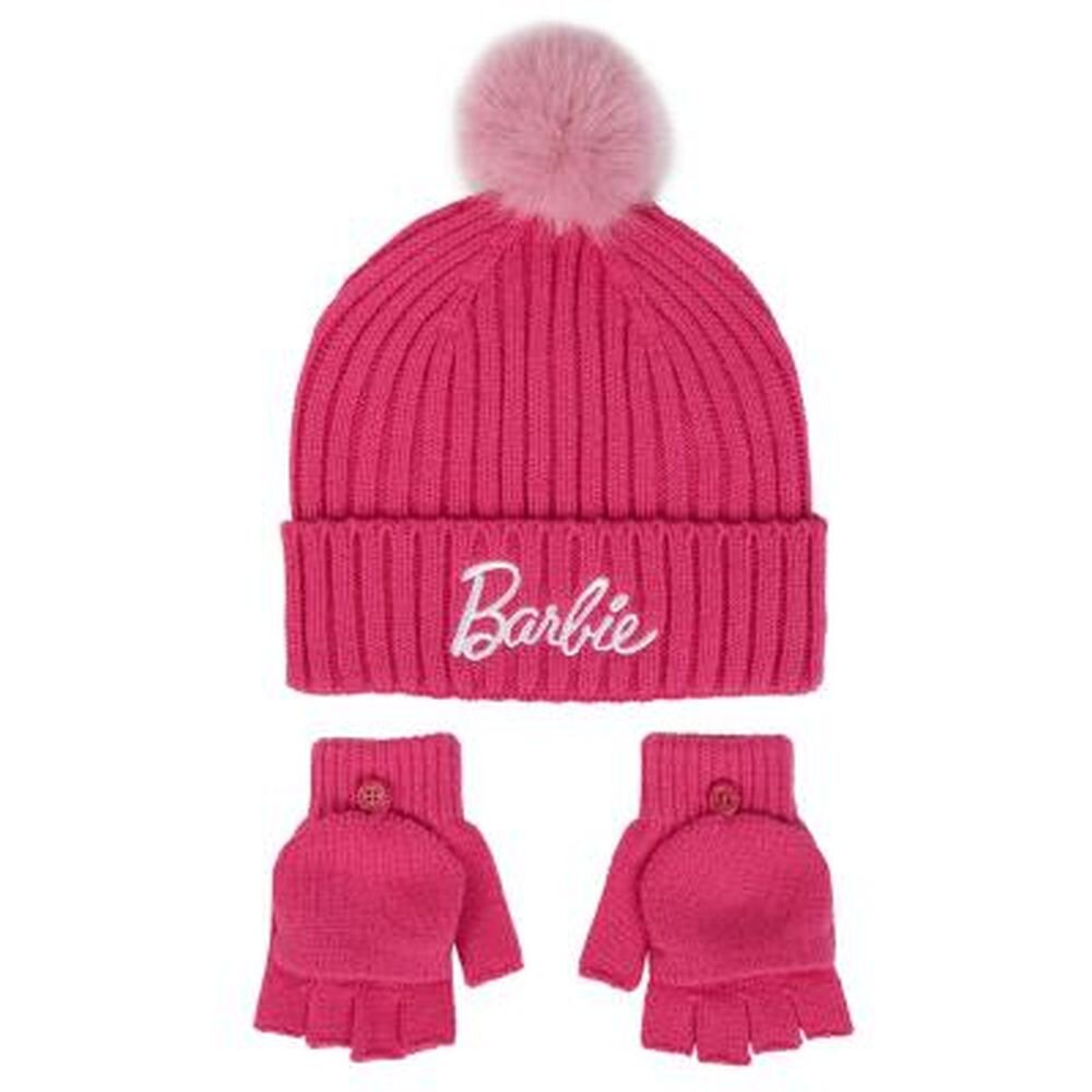 Ciepły zimowy zestaw - czapka i rękawiczki z licencją Barbie. Nadaje się dla dzieci w wieku od 5 do 8 lat. przeczytaj całość
