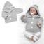 Pletený svetřík s kapucí a knoflíčky Made with Love, šedý, vel. 68/74; 68/74 (6-9m); šedá; akryl, bavlna