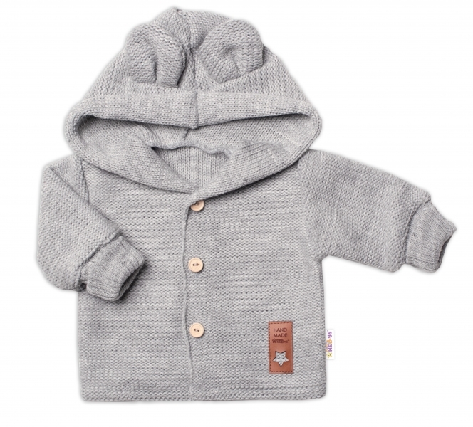 Dětský elegantní pletený svetřík s knoflíčky a kapucí s oušky Baby Nellys, šedý, vel. 86; 86 (12-18m)
