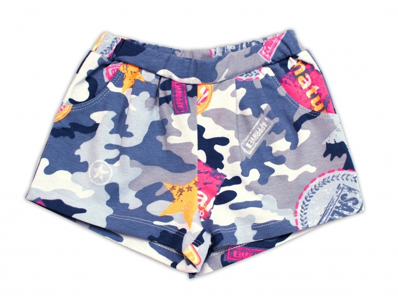 Dívčí kraťasy s kapsami, bavlna Army, Mrofi, modré, vel. 92; 92 (18-24m)