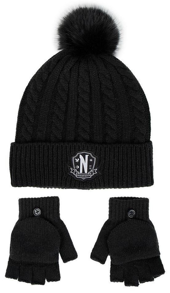 Wyraź swoją pasję do kultowego serialu Wednesday i ciesz się chłodnymi zimowymi dniami w komforcie i stylu. Ten czarny zimowy zestaw, składający się z czapki i rękawic, jest idealnym dodatkiem dla wszystkich fanów mrocznej Akademii Nevermore.