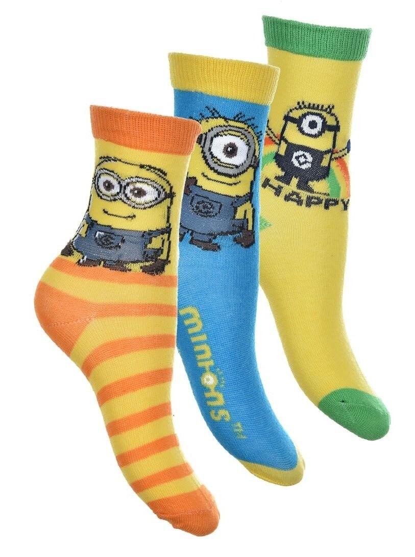 Zestaw 3 par skarpetek Minionki. 70% bawełna, 27% poliamid, 3% elastan. Cena za zestaw 3 par skarpetek. Nie można wpływać na wybór poszczególnych wzorów. Oficjalna licencja. przeczytaj całość