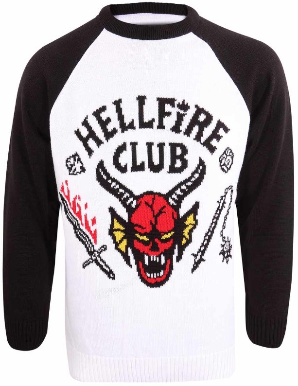 Oficiální produkt - pánský svetr z katalogu fashion a merchandise zboží s grafikou, logem a licencí amerického seriálu Stranger Things od společnosti Netflix.Zboží je legálně licencováno a prodáváno se souhlasem vlastníků licenčních práv.Atraktivní bílý svetr s grafikou a logem Hellfire Clubu pro...