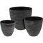Moderní sada tří černých květináčů s elegantním designem a jemným vzorem tenkých řad. Ideální pro stylové aranžmá rostlin v interiéru i exteriéru.