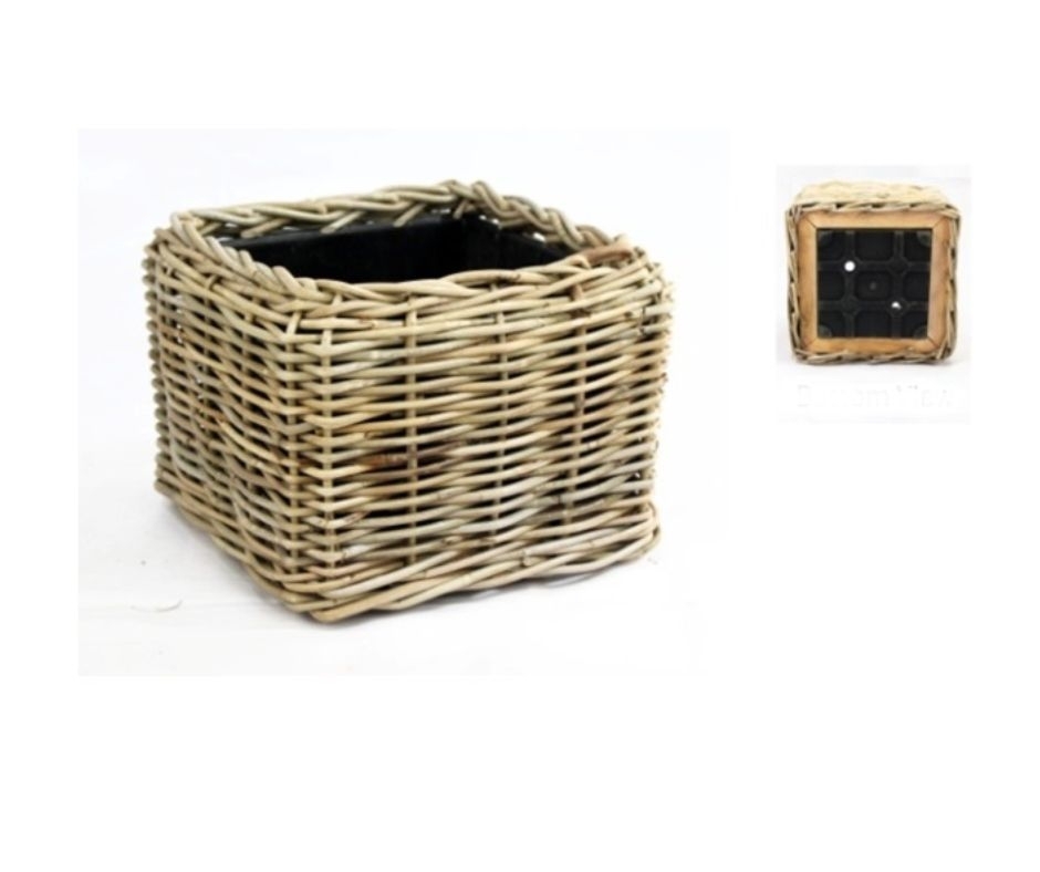 Ratanový koš s plastovým vkladem 31x31 cm, šedohnědý