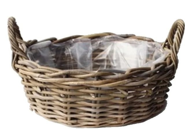 Ratanový košík-mísa s igelitovou výplní.Materiál: ratan, PVC výplňBarva: hnědošedáRozměry:výška 18 cmprůměr 43 cmDoporučení: Pro venkovní použití doporučujeme navrtat do igelitové vnitřní části dírky pro odtok přebytečné vody. Tímto zamezíte uhnívání kořenového systému. przeczytaj całość