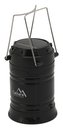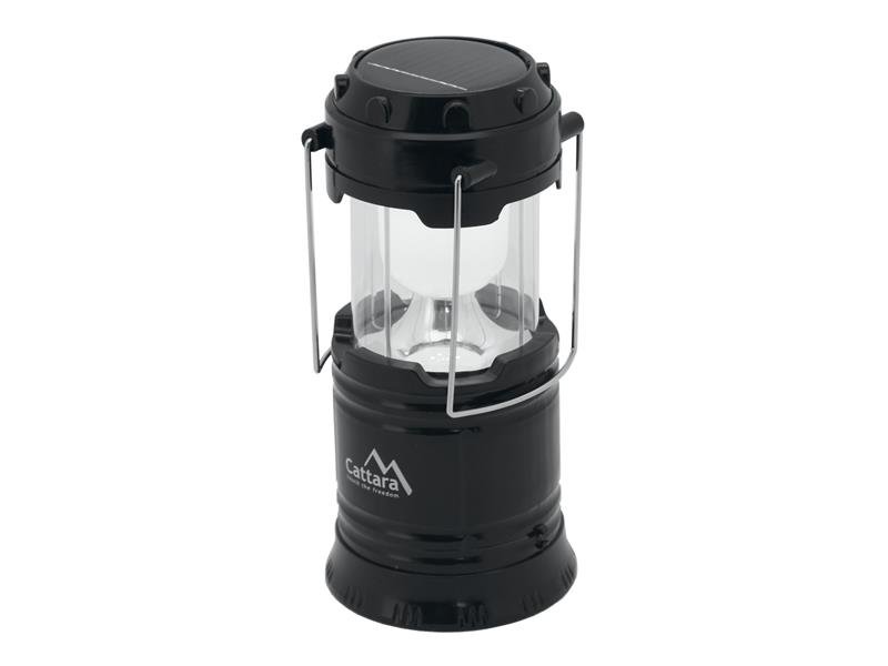 Kempingowa latarka LED z wysuwanym korpusem, wyposażona w akumulator Li-Ion oraz panel solarny. Latarka jest wyposażona w punktową diodę LED o strumieniu świetlnym 20 lm, która w połączeniu z reflektorem i szkielkiem zapewnia wysoki efekt optyczny. Latarka posiada także ukryte oświetlenie z 6 diodami LED o strumieniu świetlnym 60 lm, które jest schowane w wysuwanym korpusie i zapewnia przyjemne, nieoślepiające światło. Włączenie przedniego oświetlenia odbywa się przyciskiem umieszczonym na bocznej stronie korpusu, a uruchomienie ukrytego oświetlenia następuje przez wysunięcie korpusu latarki. Zasilanie zapewnia akumulator Li-Ion 18650 o pojemności 1200 mAh umieszczony w korpusie. Akumulator można ładować za pomocą dołączonego kabla USB. Latarka ładuje się również światłem przez panel solarny na górnej części urządzenia. Dodatkowo latarkę można wykorzystać jako powerbank za pomocą standardowego gniazda USB po boku urządzenia. Korpus o średnicy 90 mm i wysokości 135 mm można wygodnie przenosić za pomocą składanej rączki.