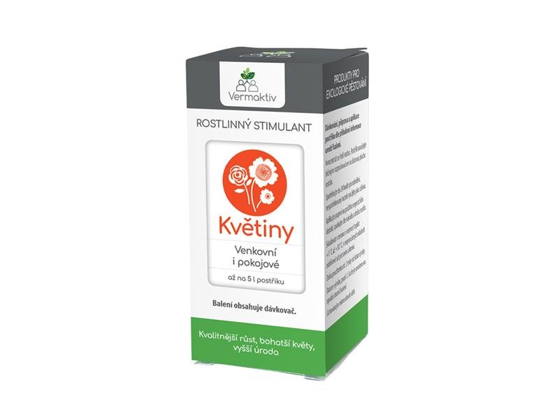 Růstový stimulant Vermaktiv Stimul Květiny o objemu 35 ml je vhodný pro všechny okrasné květiny, jako jsou kupříkladu růže, tulipány, narcisy, slunečnice, kopretiny, třapatky, plaménky, hortenzie, levandule, skalničky, alpinky a další. Podporuje rostliny v růstu a zesiluje jim kořenový systém, díky němuž získají větší objem, budou hrát barvami a budou také vynikat výraznou vůní. Ošetřené rostliny získají vyšší odolnost, jelikož jim přípravek urychlí regeneraci po sklizni, zabrání v šíření infekce, tlumí vzdušné houby a působí repelentně proti škůdcům. Vedlejším pozitivním efektem je zvyšování humusové vrstvy v půdě, bohaté olistění a urychlená schopnost kvetení. Koncentrát se ředí s vodou v poměru cca 1 : 150 – přibližně 5 až 7 ml přípravku na 1 litr vody vystačí pro plochu až 10 m². Přípravek se následně aplikuje postřikem od počátku vegetačního období s odstupem cca 3 týdnů, celkem 4krát za sezónu. Postřik se nanáší na list běžnými ručními nebo zádovými postřikovači. Ošetření rostlin doporučujeme provádět mimo dobu přímého slunečního záření. Pro pěkný trávník či bohatou úrodu zeleniny a bylinek lze zředěný roztok použít také jako ranní či večerní zálivku. Vermaktiv Stimul vzniknul po více než 20letém vývoji ve spolupráci s výzkumníky z Enzymixu, Výzkumného ústavu rostlinné výroby v Chomutově pod vedením Ing. Romana Honzíka, Univerzity Karlovy v Praze, České univerzity v Brně, Mendelovy univerzity v Brně a dalšími vědeckými instituty pro optimální vlastnosti koncentrátu. Tento pomocný rostlinný přípravek je tak vhodný pro ekologické pěstování rostlin, jelikož je netoxický a zcela nezávadný pro faunu i floru.