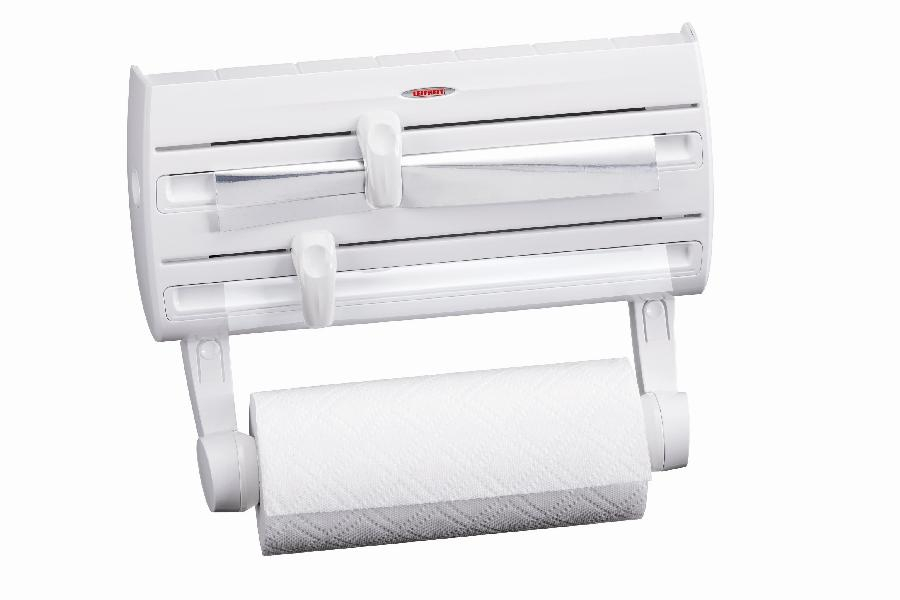 Kuchyňský držák PARAT F2 značky Leifheit.Vlastnosti:- Praktický zásobník na balící folie, papírové utěrky, alobal či sáčky na potraviny- Snadné a rychlé oddělení požadované délky- Materiál: plast- Standardní rozměr na dostupné papírové utěrky a alobaly cca 30 cm- Celkové rozměry: 38 x... przeczytaj całość