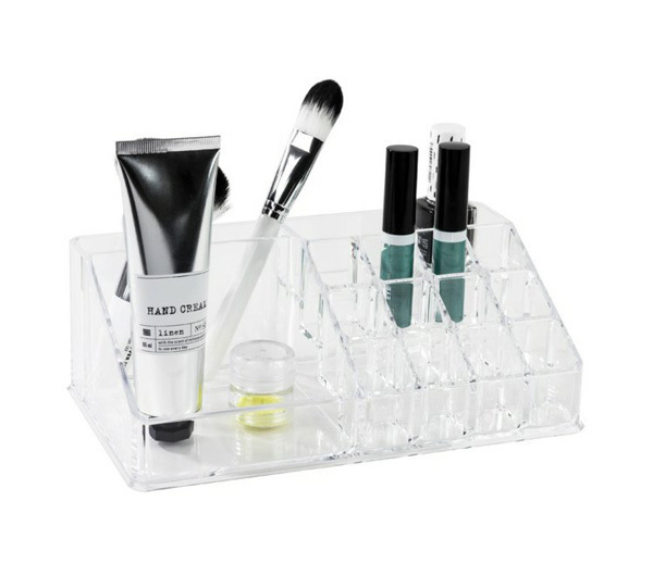 Tento prostorný organizér Compactor s patnácti přihrádkami je skvělým a prostorným pomocníkem ve vaší snaze udržet si pořádek v kosmetice. Je vyroben z odolného čirého plastu a má rozměry 22,3 x 8 x 12,7 centimetrů. S tímto velmi jednoduchým organizérem od společnosti Compactor budete mít vše potřebné přehledně na jednom místě. Mnoho oddělených přihrádek dobře poslouží nejen na rtěnky a řasenky ale i na kosmetické štětce, vatové tyčinky a další drobnosti, které každá žena má ráda po ruce. Organizér je vyroben z lehkého a zároveň velmi odolného plastu, který je čirý a hladký a jeho údržba je velmi snadná a jednoduchá. Díky tomu, že je celý organizér průhledný, máte okamžitě přehled o všech věcech v organizéru uložených. Čirý plast je rovněž velmi nadčasový, organizér se bude hodit do každé domácnosti, na každý toaletní stolek, do každé koupelny. Organizér Compactor vám pomůže udržet pořádek ve vaší kosmetice.