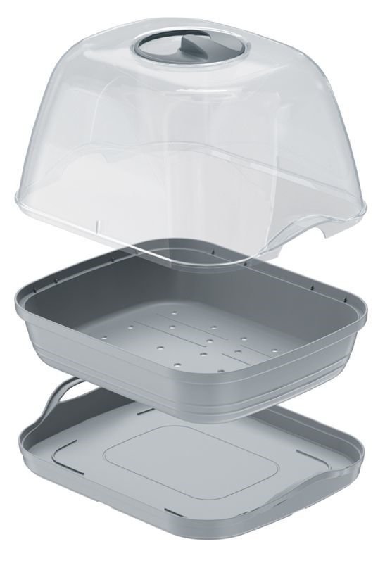 Sadzarka RESPANA TABLE GREENHOUSE z pokrywą. Kompaktowe wymiary umożliwiają uprawę ziół lub warzyw bezpośrednio w kuchni. Regulowane otwory wentylacyjne zapewniają mikroklimat i zapobiegają zaparowaniu roślin. Dzięki lekkiej półprzezroczystej pokrywie rośliny są cały czas widoczne. Kolor - szary. Materiał - polipropylen. Wymiary - szerokość 25,7 cm, głębokość 19,6 cm, wysokość 18,5 cm.