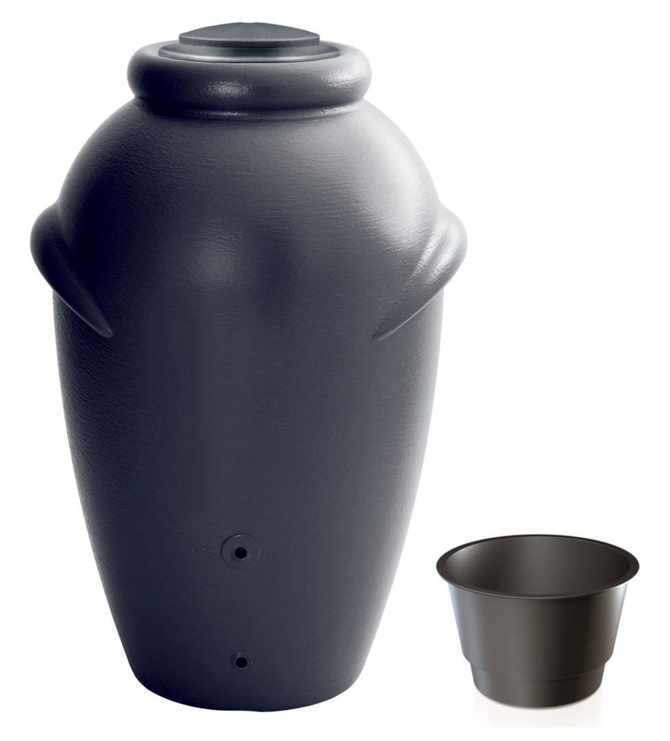 Sud na dešťovou vodu Aquacan svým vzhledem navazuje na ušlechtilý styl starověkého Řecka. Aquacan je tak nejen vysoce praktickou, ale i velmi elegantní nádrží. Sud je vybaven horním otvorem s víkem, dvěma místy pro připevnění okapů a dvěma otvory se závitem pro připevnění výpustného kohoutku (3300098) nebo zahradní hadice. Barva - antracit. Materiál - plast. Rozměry - objem 360 l, výška 120 cm, 72x80 cm.