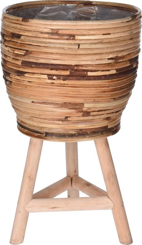 Květináč ratanový na dřevěné noze 24,5 x 41 cm hnědá