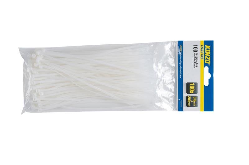SVORKA KABELOVÁ 100KS 3,6X200MM BÍLÁ KINZO