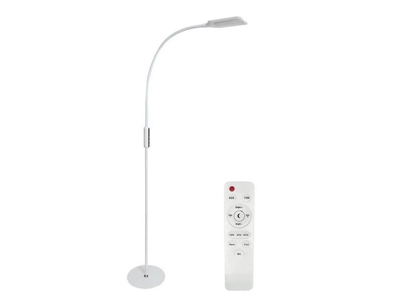 Podlahová lampa- Konstrukce v kovovém provedení- Flexibilní vrchní částTechnické parametry:- Světelný zdroj: LED- Výkon: 9W- max. 500lm- Úhel světla: 120°- Teplota světla: 3000k, 6500K- Ovládání: na ovládacím panelu lampy nebo dálkovým ovladačem- Ovládání na lampě: ON/OFF, 5 stupňů...