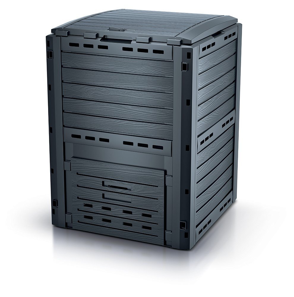 Kompostownik wyposażony jest w prostą, lecz praktyczną konstrukcję z systemem napowietrzania, który ułatwia rozkład materiału organicznego i przyspiesza powstawanie wysokiej jakości kompostu. Brak dna umożliwia bezpośredni kontakt z glebą, co wspomaga naturalny i efektywny proces rozkładu. Zamknięcie kompostownika zaprojektowano tak, aby zapobiegało wydostawaniu się zapachów i jednocześnie chroniło zawartość przed latającymi owadami.