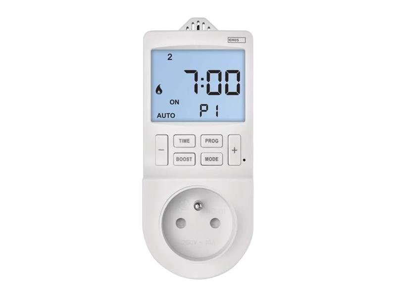 Termostat do wtyczki z funkcją cyfrowego timera 2w1. Szukasz wielofunkcyjnego cyfrowego gniazdka, które możesz wykorzystać jako praktyczny termostat nie tylko w sezonie grzewczym, albo jako timer np. do świątecznego oświetlenia? Właśnie to gniazdko sterowane i termostatyczne EMOS będzie idealnym pomocnikiem przez cały rok. Z pewnością zaskoczy Cię nie tylko czytelny wyświetlacz z dużymi cyframi, ale także możliwość ustawienia aż 24 programów. Nie musisz obawiać się przerwy w zasilaniu - ustawione programy nie znikną i nadal możesz cieszyć się optymalną temperaturą w domu lub idealnym czasem włączenia dowolnej dekoracji świetlnej. Docenisz funkcję 2 w 1 - połączenie gniazdka włączającego/wyłączającego do czasowego sterowania urządzeniami domowymi oraz gniazdka sterowanego termicznie, pełniącego funkcję termostatu. Dzięki takiemu uniwersalnemu ustawieniu gniazdka wykorzystasz je maksymalnie efektywnie przez cały rok. Niezależnie od tego, czy chcesz regulować grzejnik elektryczny, wentylator, czasowo sterować filtracją basenu, czy np. oświetlenie choinki. Dużą zaletą tego termostatycznego gniazdka jest również czytelny wyświetlacz, który wyróżnia się wyraźnym podświetleniem ułatwiającym obsługę w ciemności lub przy słabszym oświetleniu. Dzięki dużym cyfrom na wyświetlaczu łatwo sprawdzisz aktualną i ustawioną temperaturę, co docenią również osoby z gorszym wzrokiem. Aktywacja podświetlenia jest bardzo prosta - wystarczy nacisnąć dowolny przycisk, a podświetlenie włączy się na 15 sekund. Funkcję timera możesz wykorzystać np. do automatycznego włączania filtracji basenu, oświetlenia akwarium dla rybek albo bezproblemowego włączania świątecznych lampek. W tym trybie możesz korzystać z aż 24 programowalnych ustawień z minimalnym czasem załączenia jednej minuty, które zachowają się także po przerwie w zasilaniu. Dzięki funkcji BOOST (tzw. odliczanie) możesz włączyć urządzenie poza zaprogramowanym cyklem. Po zakończeniu ustawionego interwału czasowego gniazdko automatycznie wróci do pierwotnie ustawionego programu. Funkcja termostatu: stwórz w domu lub w biurze przyjemny komfort według własnych preferencji. Termostat możesz wykorzystać do automatycznej regulacji elektrycznych systemów grzewczych i chłodzących, takich jak grzejniki elektryczne, drabinki grzewcze czy klimatyzacje. Wystarczy wcisnąć przycisk i wybrać temperaturę w zakresie od 5 °C do 40 °C. Dzięki funkcji BOOST możesz jednorazowo zmienić ustawioną temperaturę w pomieszczeniu poza aktualnym programem. Po upływie ustawionego czasu gniazdko automatycznie wróci do pierwotnego programu. Jeżeli używasz cyfrowego gniazdka jako termostatu, umieść je w miejscu z swobodną cyrkulacją powietrza i poza bezpośrednim nasłonecznieniem. Ten termostat można stosować w trybie grzania lub chłodzenia.