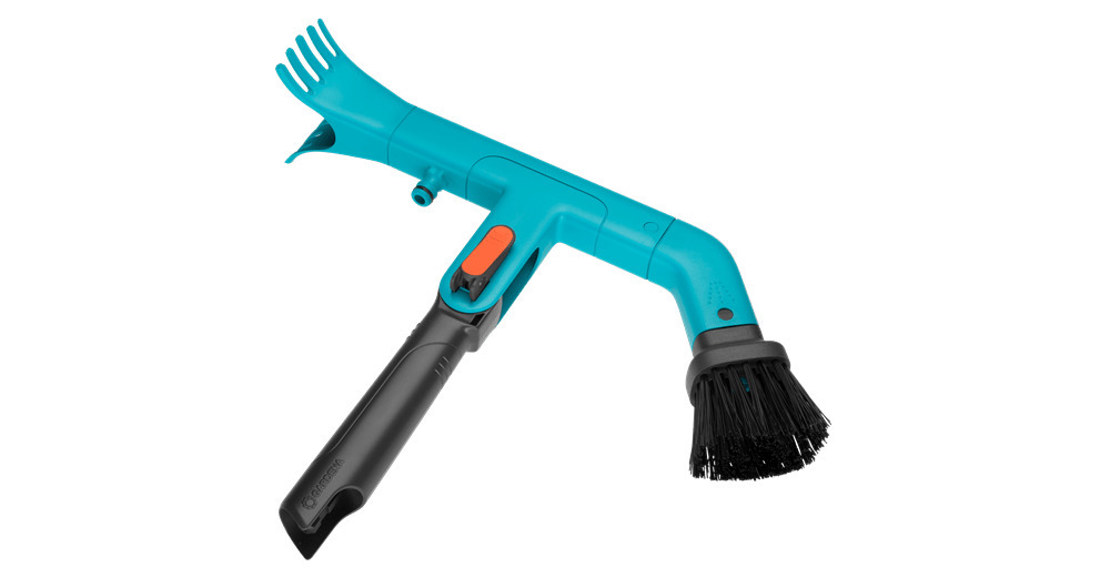 GARDENA combisystem čistič okapů je optimálně vhodný pro snadné čištění okapů. Pevné štětiny na jedné straně a dvě pevné ozubené plastové škrabky na druhé straně umožňují efektivní čištění. Rukojeť pro manipulaci umožňuje snadné použití i bez násady. K čištění okapů je možné také použít vodu....