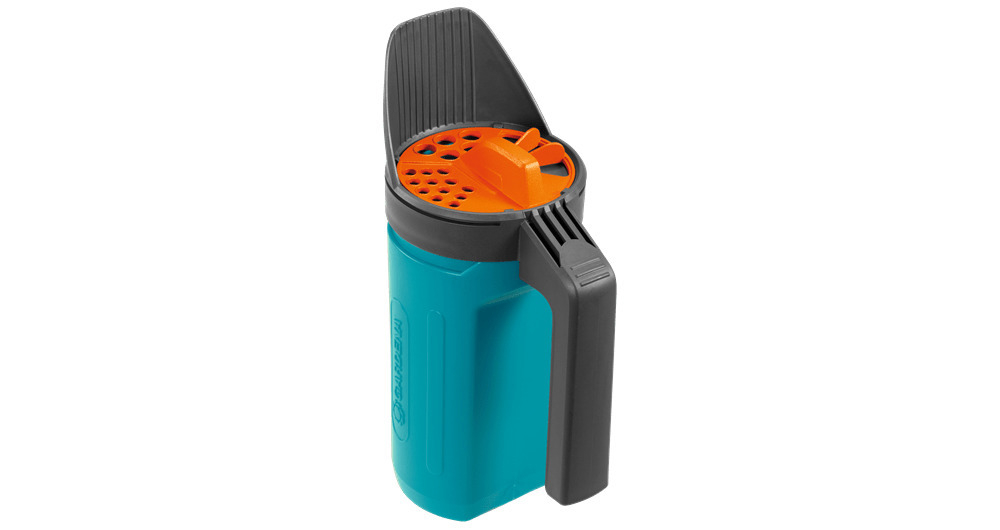 Do szybkiego napełniania uchwyt można wykorzystać jako praktyczną łopatkę, a zbiornik wygodnie trzyma się dzięki jego ergonomicznemu kształtowi z wgłębieniami. Sypacz posiada również niezawodne zamknięcie bagnetowe, które zapewnia łatwe otwieranie i zamykanie bez zbędnych kłopotów. GARDENA udziela na ten produkt 25-letniej gwarancji, co świadczy o jego solidnym wykonaniu i długiej żywotności.