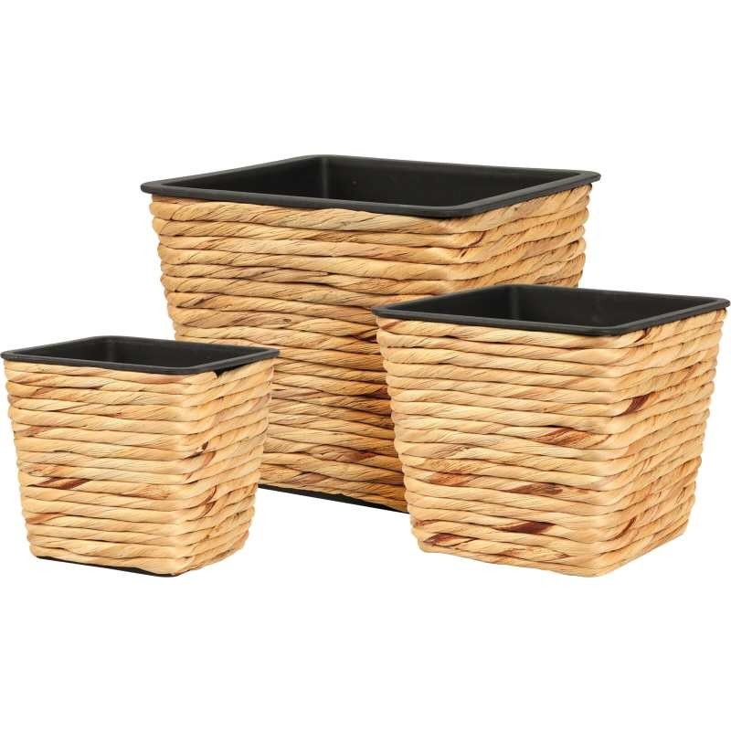 PLANT POT SQUARE, WATER HYANCINTH WEAVING (EICHHORNIA CRASSIPES), SET OF 3PCS: SMALL: 12,8X12,8X12CM, MEDIUM: 16X16X14CM, LARGE: 20X20X17CM, NATURAL COLOUR, WITH HOLE, STICKER INSIDE/ PLANT POT SQUARE SMALL(8720573 859363), 128X128X120MM, Barcode Sticker (SB22)/ PLANT POT SQUARE MEDIUM(8720573...