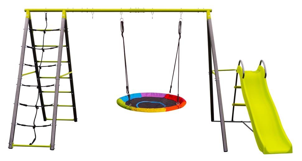 Jak dopřát dětem spoustu skvělé a zároveň bezpečné zábavy? Pořiďte jim zahradní set s houpacím kruhem, lezeckou stěnou a skluzavkou. Na kruhu se děti pohodlně pohupují, skluzavka je zabaví a zlepší jim fyzičku a lezecká stěna je motivuje zkusit něco nového.Hlavní přednostistabilní konstrukce z...
