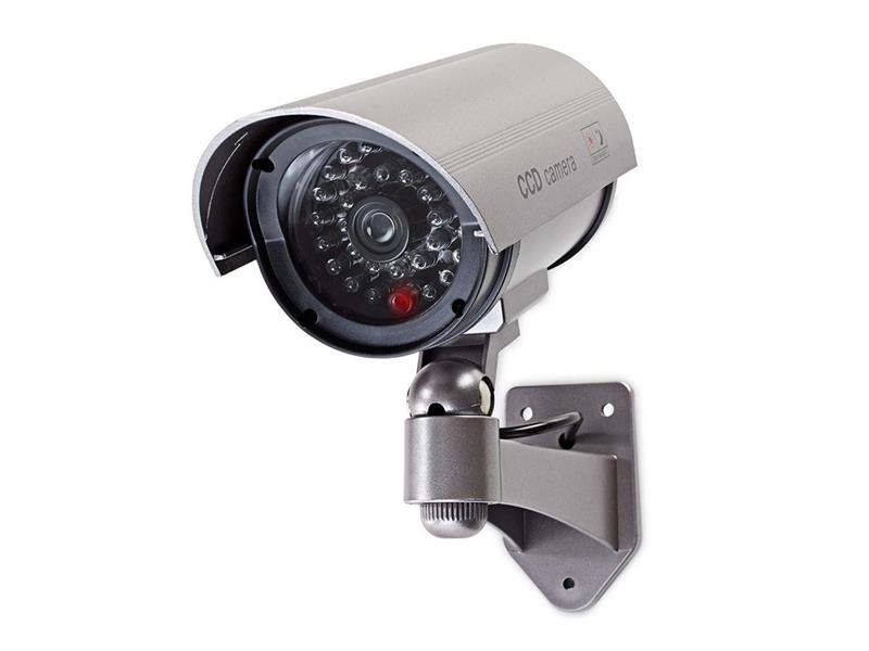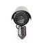 Atrapa kamery NEDIS DUMCB40GY Atrapa zewnętrznej kamery ma bardzo profesjonalny wygląd, charakteryzuje się wbudowaną migającą diodą LED oraz bardzo realistycznie wyglądającą sztuczną diodą podczerwienną LED, co pomaga zapobiegać włamaniom. Zasilana jest dwoma bateriami AA i można ją łatwo zamontować za pomocą dołączonego uchwytu.