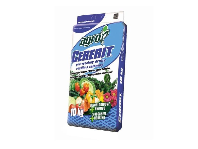 Hnojivo granulované AGRO CERERIT 10 kg pytel AGRO CERERIT je univerzální granulované bezchloridové hnojivo s obsahem hořčíku, který zajišťuje vyšší úrodu a lepší vybarvení plodů. Je vhodné pro všechny druhy rostlin, zejména pro rostliny citlivé na chlór (plodová...