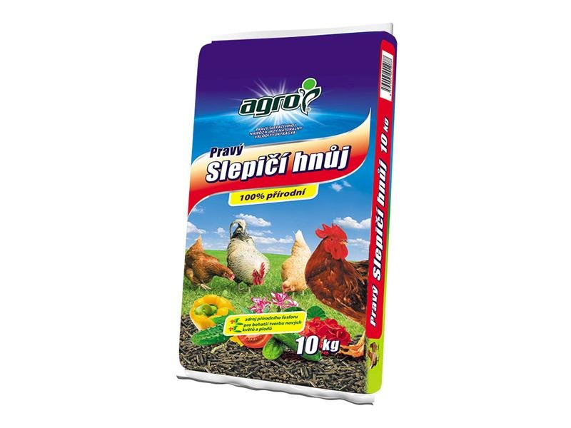 Hnojivo organické AGRO PRAVÝ SLEPIČÍ HNŮJ 10 kg Agro Pravý slepičí hnůj je organické hnojivo vyrobené z drůbeží podestýlky s přidáním melasy, melasových výpalků. Používá se k základnímu hnojení před výsadbou, případně k přihnojování během vegetace ovoce, zeleniny,...