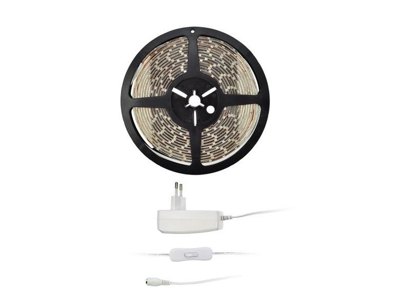 LED světelný pás s testrem, 5m, sada s 12V adaptérem, 4,8W/m, IP65, teplá bílá
