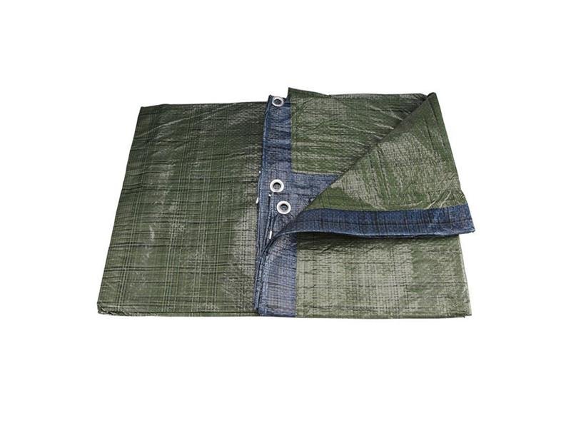Plandeka kryjąca z PE w kolorze zielono-niebieskim, z nierdzewnymi oczkami co 100 cm i obustronną laminacją, ochroną przed warunkami atmosferycznymi oraz wzmocnionymi brzegami. Odchylenie od podanych wymiarów ± 5%.