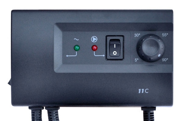 Elektronický termostat pro oběhová čerpadla topných systémů, který zapíná nebo vypíná čerpadlo v závislosti na přednastavené teplotě. Přístroj zajišťuje cirkulaci vody v otopných systémech s plynovým nebo uhelným kotlem, který není vybaven samostatnou jednotkou pro ovládání čerpadla. Teplotní snímač zaznamenává teplotu ohřáté vody, která je do otopného systému dodávána kotlem.