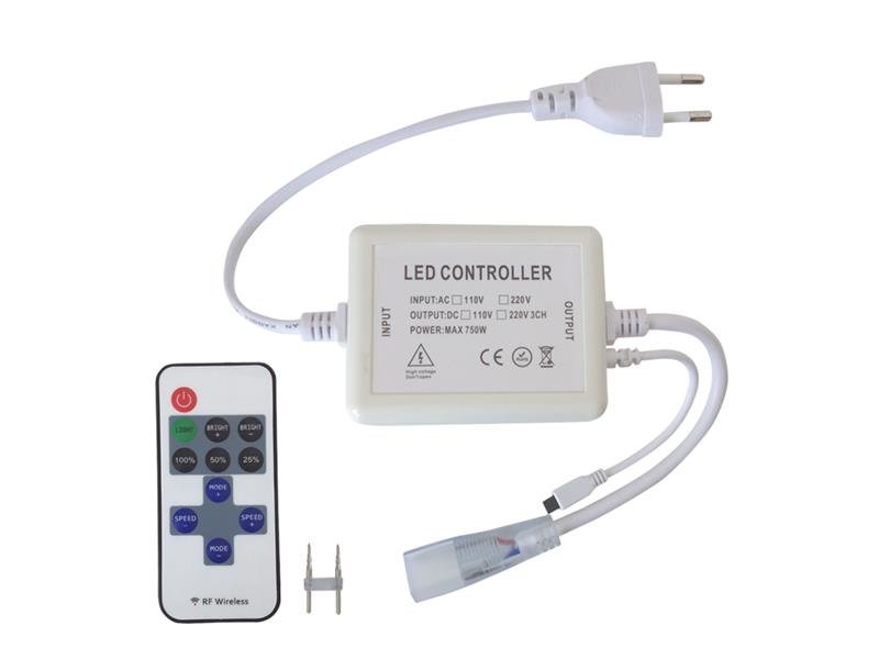 Ovladač pro jednobarevné LED pásky 230V s čipem 3528 + dálkové ovládání.