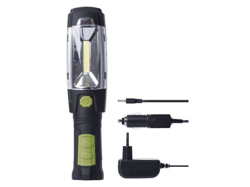 źródło światła: 3 W COB LED + 6× LED 5 mm zasilanie: akumulator Li-Ion 18650 3,7 V/2 500 mAh zasięg: COB LED - 30 m, 6 LED - 25 m zastosowanie: robocze fokus ? nie czas świecenia: COB LED - 3,5 godziny, 6 LED - 25 godzin ładowanie: z samochodu i zasilacza czas ładowania: 4 godziny maksymalny strumień świetlny LED: do 280 lm maksymalny strumień świetlny produktu: nie podano materiał: tworzywo ABS wodoodporna: nie haczyk: tak magnes: tak