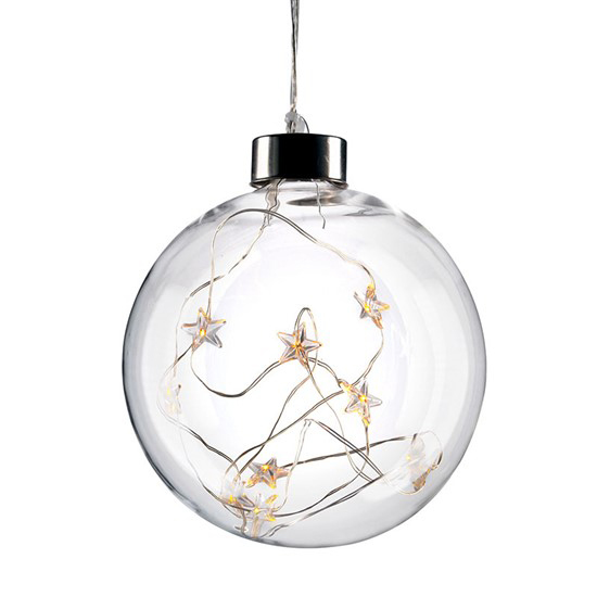 Dekorace vánoční SOLIGHT 1V204 koule Vánoční koule skleněná s LED řetízkem uvnitřPočet LED diod: 10Barva světla: teplá bílá (žlutá)Napájení: 2x AA baterie (nejsou součástí)Výdrž baterií: cca 100 hod. (v závislosti na kvalitě baterií)Třída ochrany: IP20 (vnitřní... przeczytaj całość