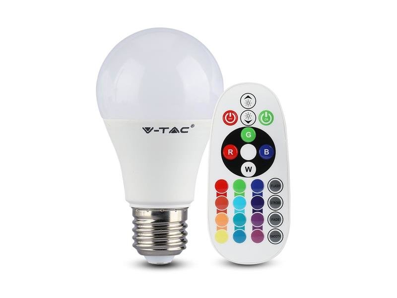 Žárovka V-TAC s dálkovým ovládáním nahrazuje starší model. Má větší výkon 9W zářivější barvy a díky lepší svítivosti 806 lm nadchne každého hosta vaší domácnosti. LED žárovky jsou ekologickou náhradou klasických žárovek. Vedle extrémně malé spotřeby energie a vysoké efektivity, vynikají LED žárovky také velmi dlouhou životností, vysokou odolností vůči nárazům, vibracím a výkyvům teplot.