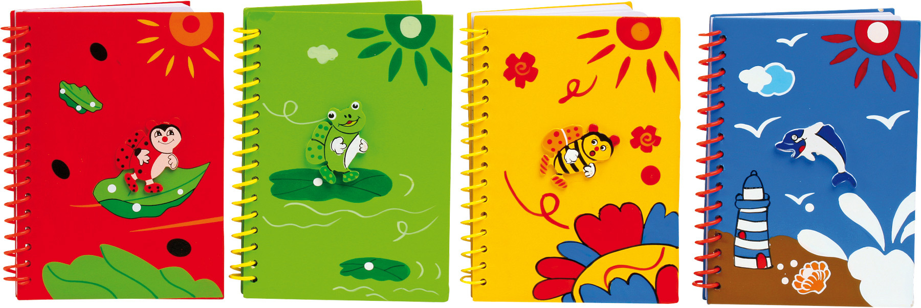 Poznámkový sešit s dřevěným obalem 1 ksMalé kroužkové sešity s cca 40 linkovanými stranami na zapsání důležitých věcí nebo letmých myšlenek. Přední strana z barevně lakovaných, ručně malovaných dřevěných desek zobrazuje půvabná zvířátka ze dřeva v hodících se barvách!Při objednávání můžete v...