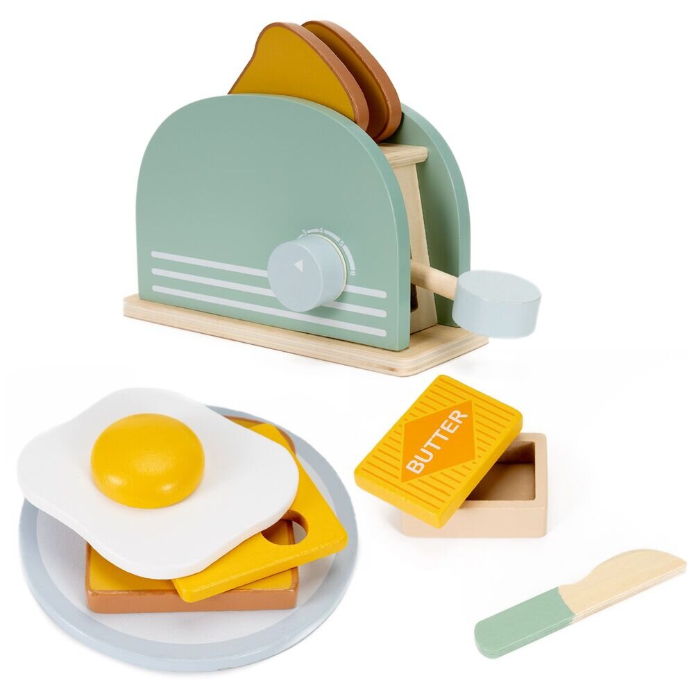 Dřevěná hračka pro přípravu chutné snídaně, která podporuje učení formou napodobování a kreativní hru. Sendvičovač / toustovač je vyroben z přírodního, hladce broušeného dřeva, 100% bez BPA a má odolné provedení vhodné pro děti. Realistické detaily, cvakací knoflík s nastavením teploty a barevné...