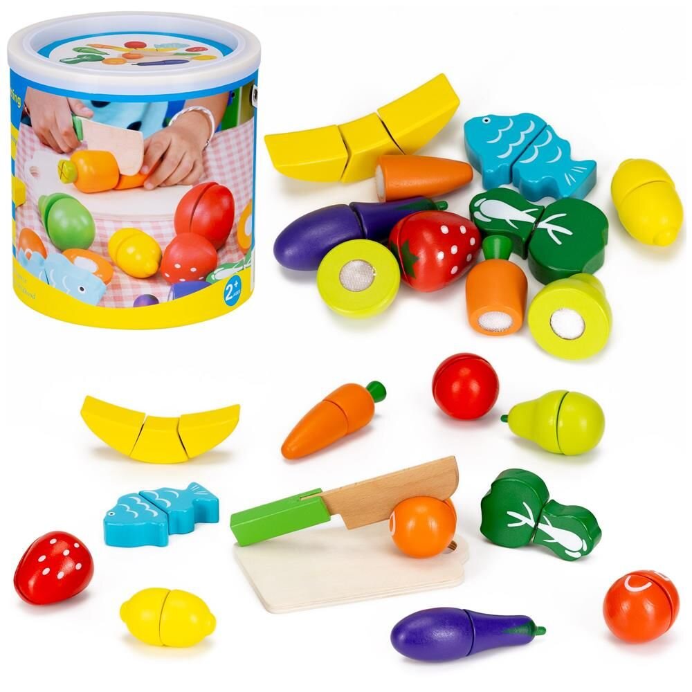 Barevná dřevěná sada pro hravou přípravu jídla podporuje učení formou zábavy a rozvoj dětských dovedností. Ovoce a zelenina spojené suchým zipem lze snadno „krájet“ a znovu spojovat, přičemž zvuk rozepnutí suchého zipu umocňuje realistický zážitek ze hry. Vyrobena z lehce broušeného, bezpečného...